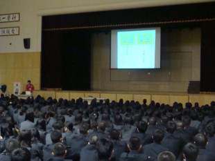 自転車の安全走行についてスクリーンを使ってわかりやすく解説していただきました。また、自転車の運転シミュレーターを使い、運転する際の危険を体感することで交通ルールの再確認をすることができました。