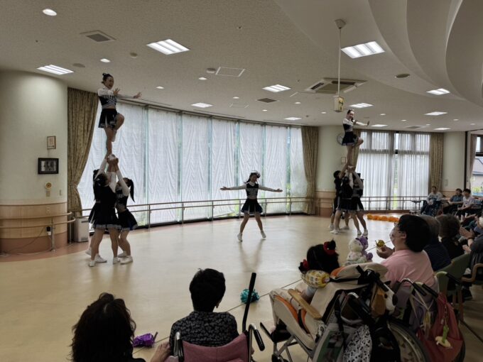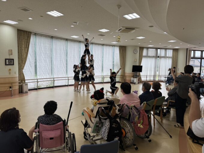 演技を披露しました。スタンツ、ダンス、野球応援など皆様に元気、勇気、笑顔を