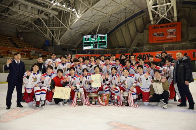 1月23日(金)~1月26日(月)に栃木県日光市で開催された「第75回全国高等学校アイスホッケー競技選手権大会」において、5年連続36回目の優勝を飾りました。