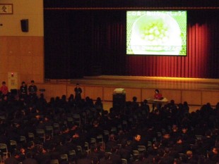 今回本校1年生258名を対象とした報告会となりましたが、最初の和やかな雰囲気で始まった自己紹介とベトナムの文化事情から、問題を多く抱え苦しんでいるベトナムの現状に話しが進むにつれ会場の空気感も変わり、彼らの話しに真剣に耳を傾けている緊張感が伝わってきました。同じ高校生がベトナムの現実に直に触れ感じたことを同じアジアの人として何をすべきかまで考える報告に、今まで知識として全く脳裏になかった本校生との間が急速に縮まった瞬間でした。この良き機会を得て、駒澤生だけでなく多くの高校生が世界に目を向け、問題意識を持つことができればまさに「アジアの架け橋」の一歩となるでしょう。